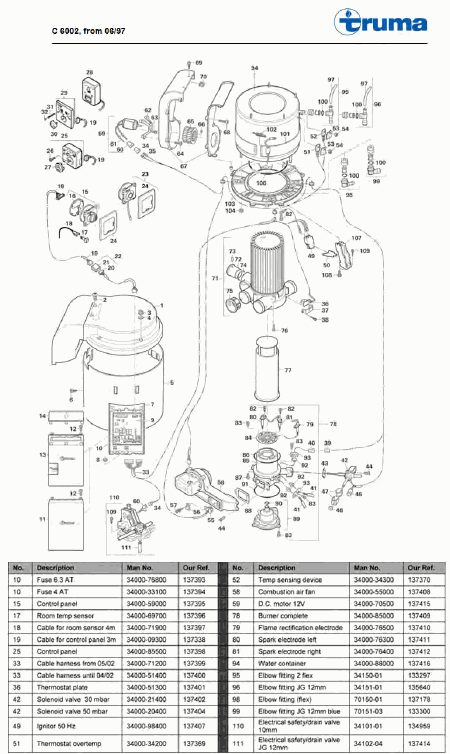 TRUMA Trumatic C 6002 (from 06/1997) Lista de piezas de repuesto Inglés