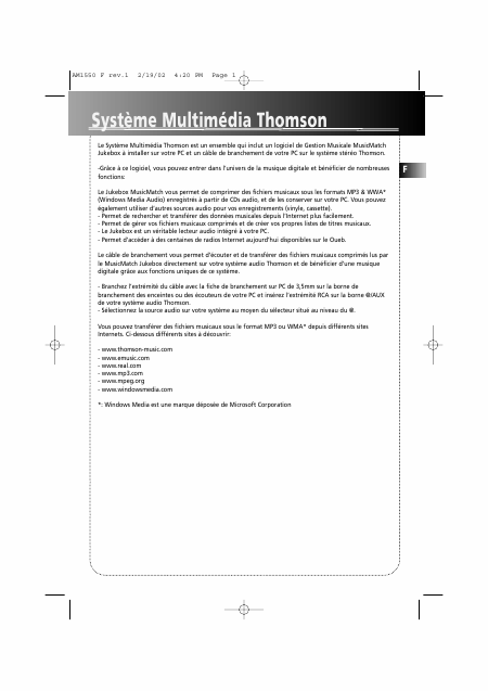 Scaricare THOMSON AM 1550 (AM1550) Istruzione Francese (15 Pagine) 15.90 EUR