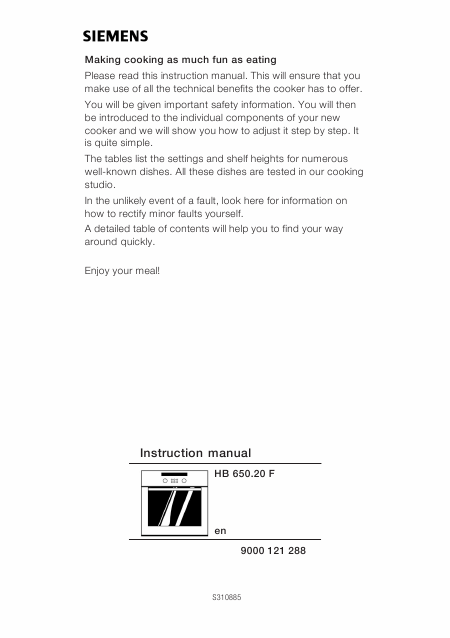 Scaricare SIEMENS HB650.20F Istruzione Inglese (0 Pagine) 12.90 EUR