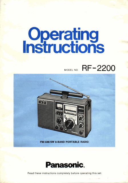 Download PANASONIC RF-2200 Anleitung Englisch (7 Seiten) 39.90 EUR