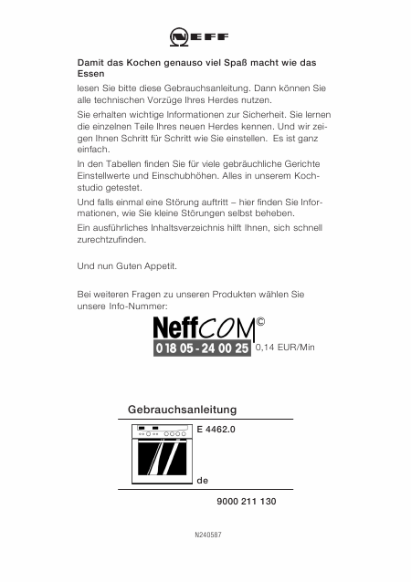NEFF E 4462.0 Mode emploi Allemand