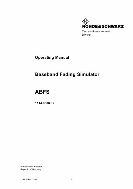 Download ROHDE & SCHWARZ ABFS Users Guide English (203 Pages) 12.90 EUR