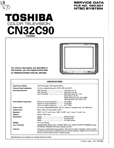 TOSHIBA CN32C90 Manual de taller Inglés