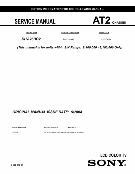 SONY KLV-26HG2 Manual de taller Inglés
